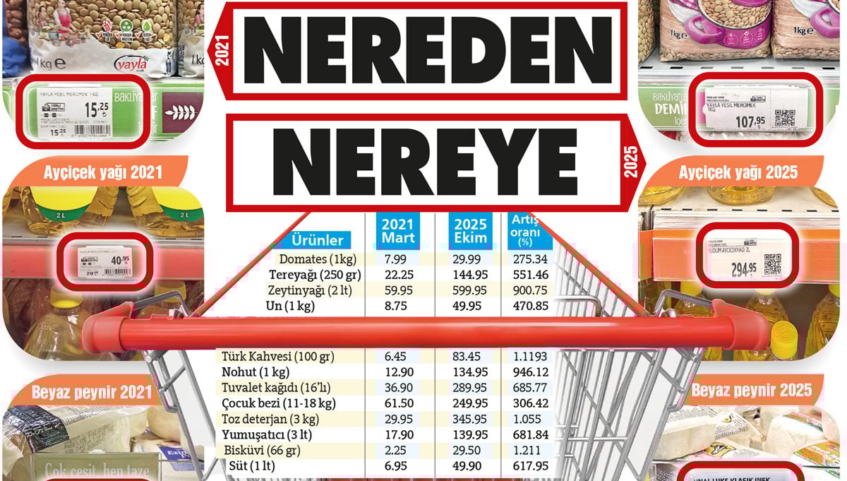 Türkiye’nin yaşadığı ekonomik kriz, 2021’de ‘Faiz sebep enflasyon sonuç’ teziyle daha da derinleşti. Bu kriz en çok da gıda enflasyonunu içinden çıkılmaz hale getirdi. SÖZCÜ, 2021 yılı Mart ayında 25 üründen oluşan bir alışveriş sepetinin fiyatlarını bugünle kıyasladı. Sepet 4 yılda 8.7 kat zamlandı. Aynı sürede asgari ücret yalnızca 6 kat zamlandı.