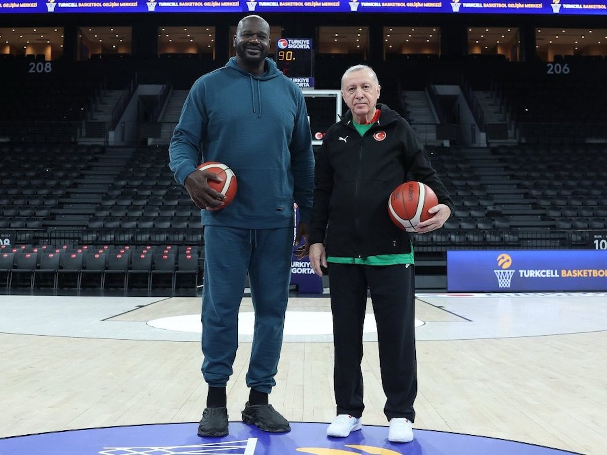 Basketbol efsanesi Shaquille O’Neal ile Basketbol Gelişim Merkezi’nde buluşan Cumhurbaşkanı Erdoğan, samimi bir ortamda bir araya geldi. İkili, birbirlerine imzalı basketbol toplarını hediye etti ve parkede basketbol topuyla poz vererek sohbet etti.